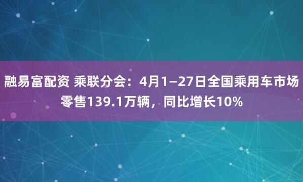 人民财讯4月30日电,据乘联分会,4月1—27日,全国乘用车市场零售139.1万辆,同比去年4月同期增长10%,较上月同期下降10%,今年以来累计零售651.8....